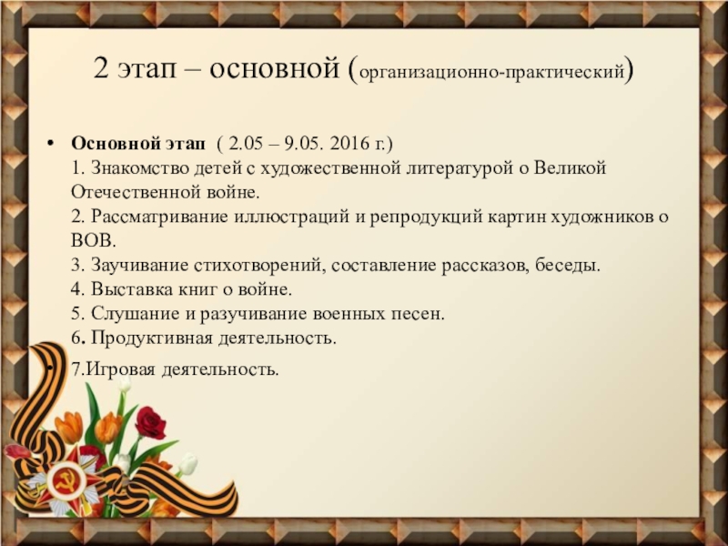 Слайд 102 этап – основной (организационно-практический)