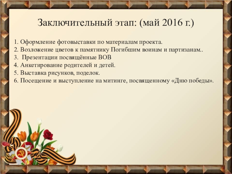 Основной этап ( 2.05 – 9.05. 2016