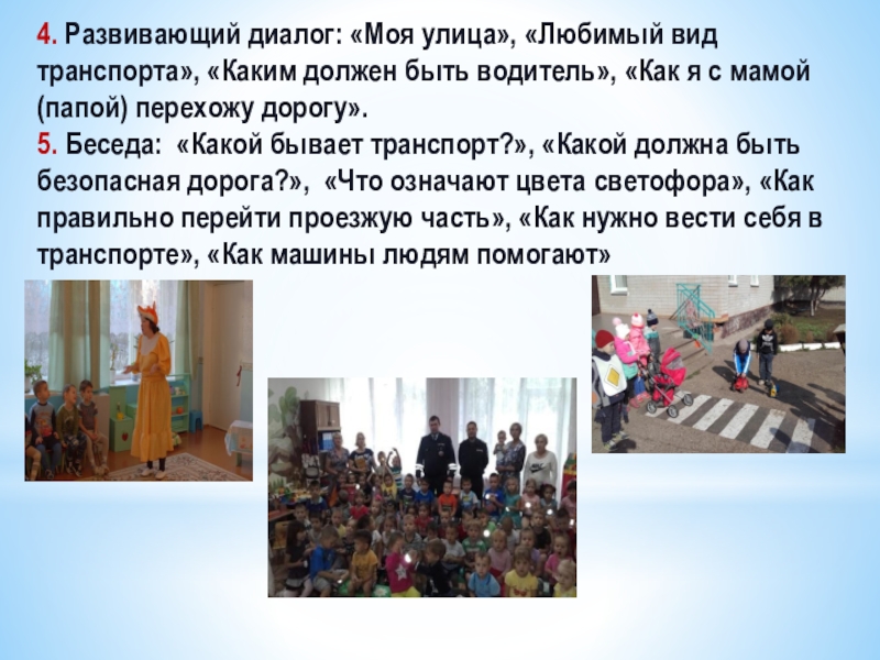 Слайд 94. Развивающий диалог: «Моя улица», «Любимый вид транспорта», «Каким должен быть
