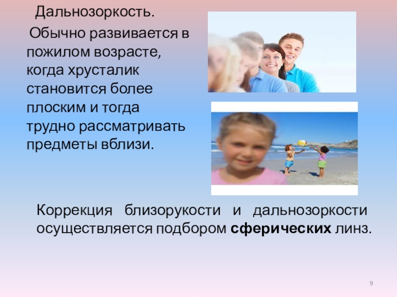 Коррекция близорукости и дальнозоркости осуществляется подбором сферических линз.