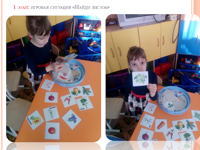 Слайд 101 этап: игровая ситуация «Найди листок»