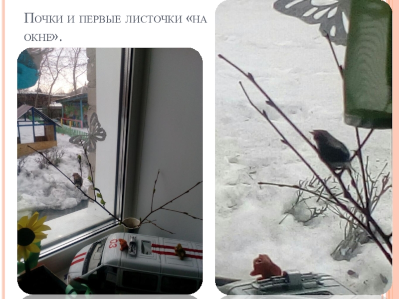 Слайд 45Почки и первые листочки «на окне».