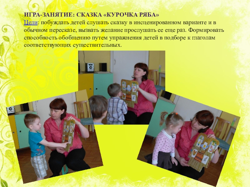 Слайд 13Игра-занятие: Сказка «Курочка Ряба»