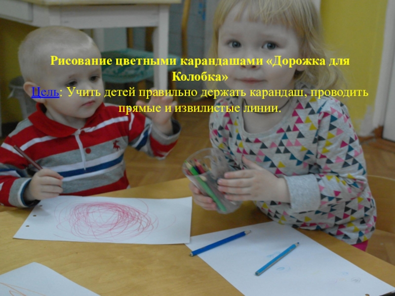 Слайд 22Рисование цветными карандашами «Дорожка для Колобка»