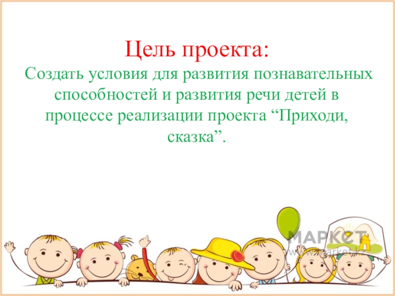 Слайд 1Проект “Приходи, сказка.” ( Развитие активной речи детей раннего возраста средствами