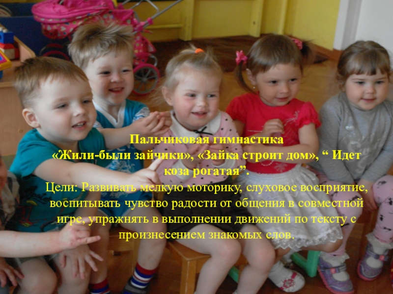 мелкую моторику, слуховое восприятие, воспитывать чувство радости от общения в совместной игре, упражнять в выполнении движений по тексту с произнесением знакомых слов.