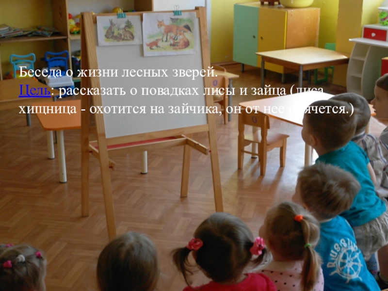 (лиса хищница - охотится на зайчика, он от нее прячется.)