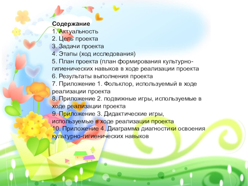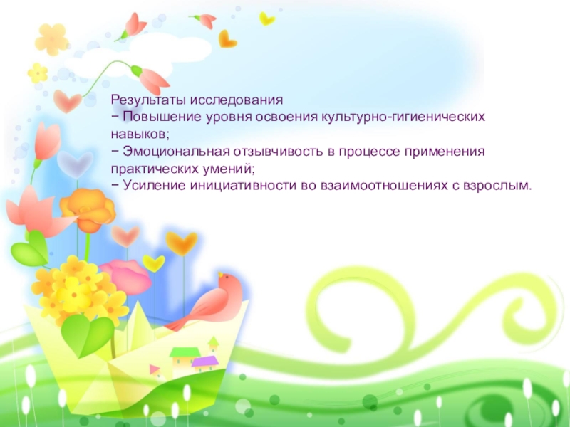 2. Определить эффективность проектной деятельности, уровень освоения детьми культурно-гигиенических навыков.