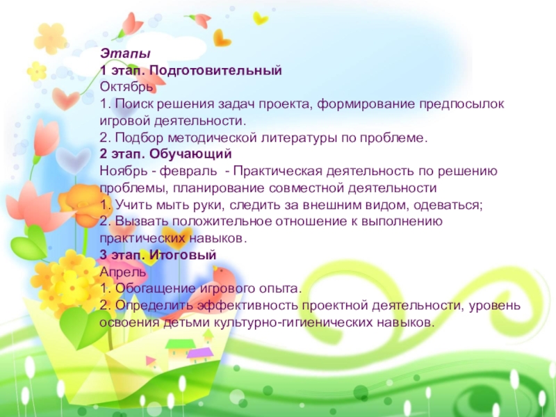 (план формирования культурно-гигиенических навыков в ходе реализации проекта