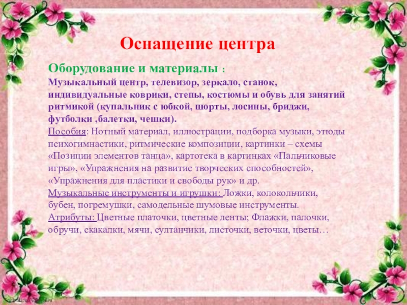 Слайд 12Оснащение центра