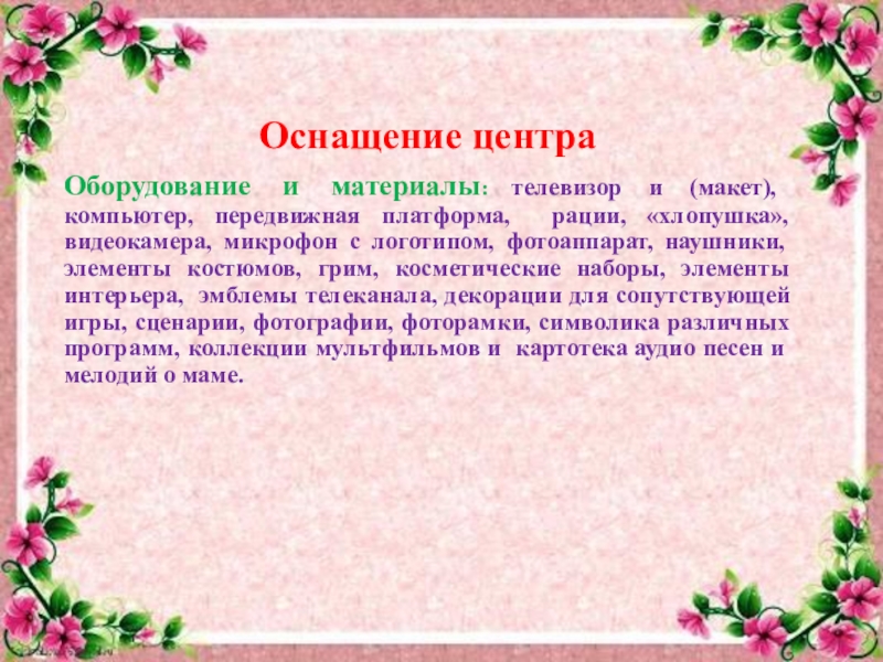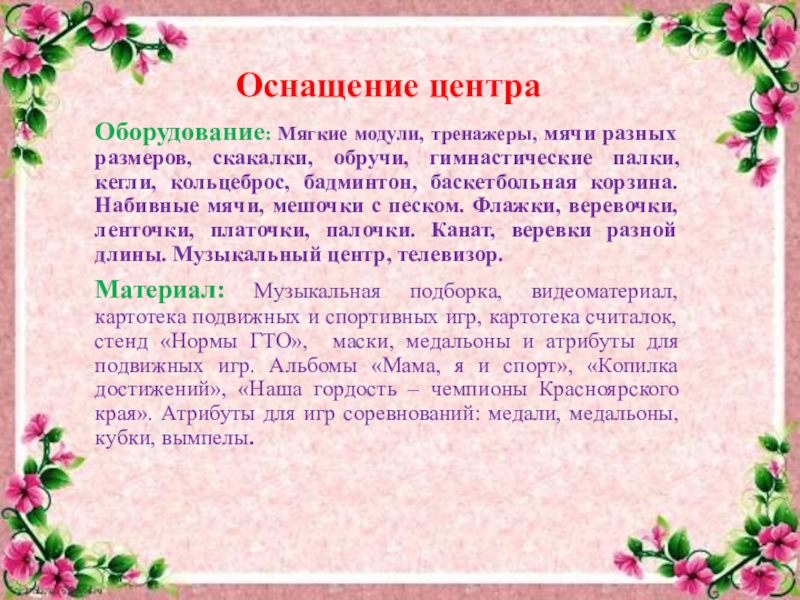 Слайд 23Оснащение центра