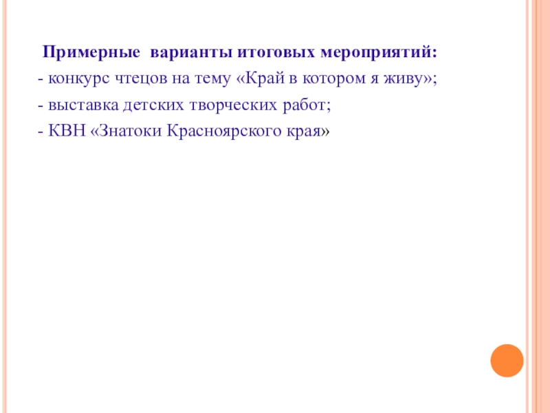 Слайд 32 Примерные варианты итоговых мероприятий:
