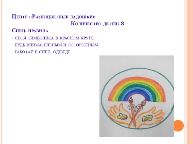 Слайд 27Центр «Разноцветные ладошки»
