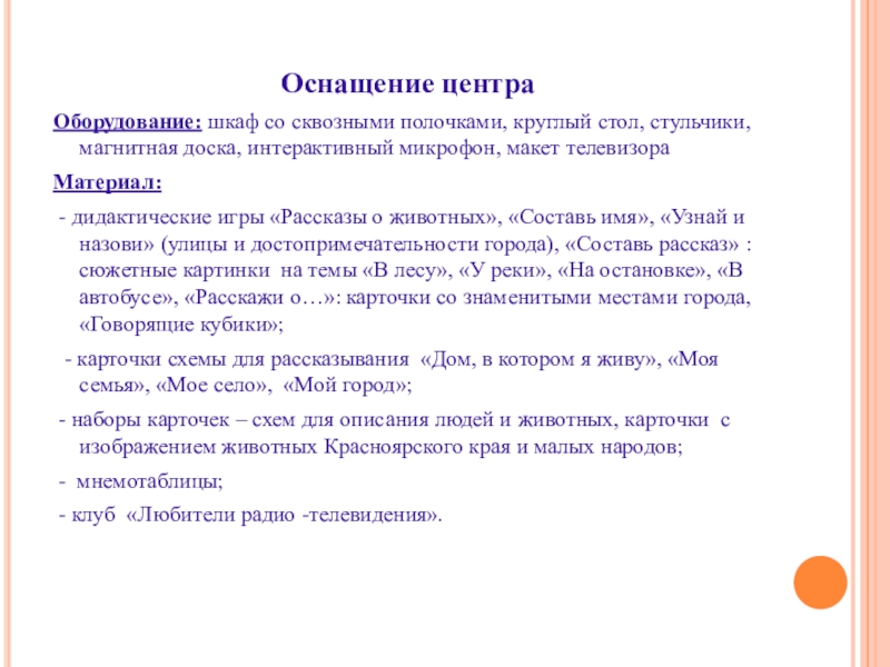 Слайд 22Оснащение центра: