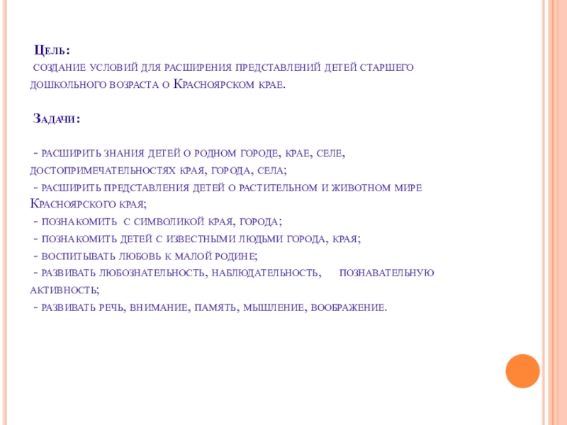 - расширить знания детей о родном городе, крае, селе, достопримечательностях края, города, села;