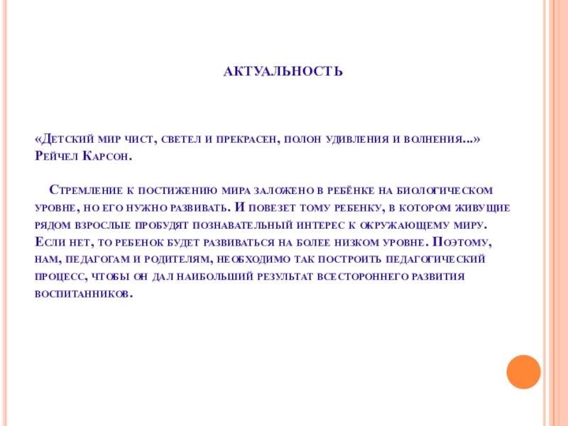 Слайд 3«Детский мир чист, светел и прекрасен, полон удивления и волнения...» Рейчел