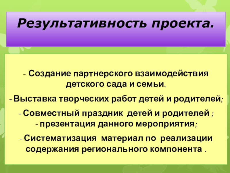 - Совместный праздник детей и родителей ; - презентация данного мероприятия;