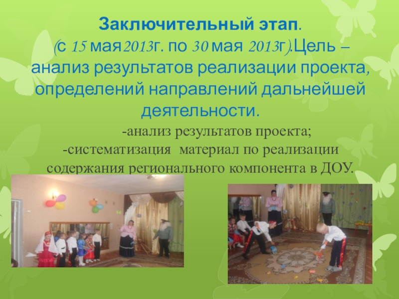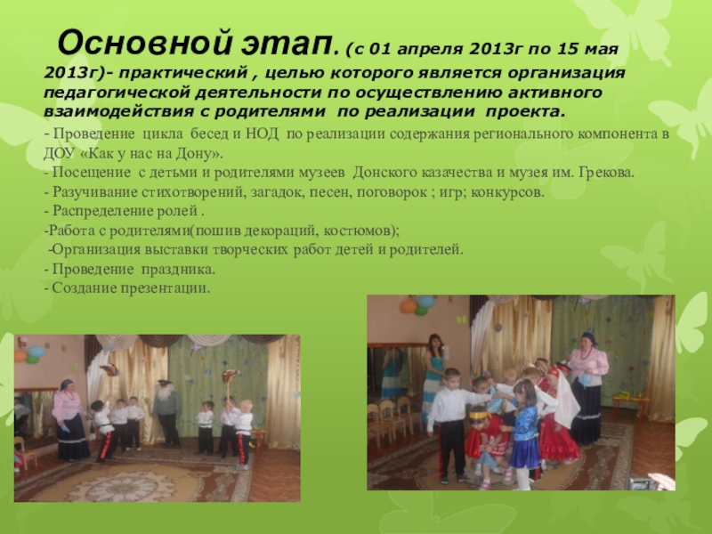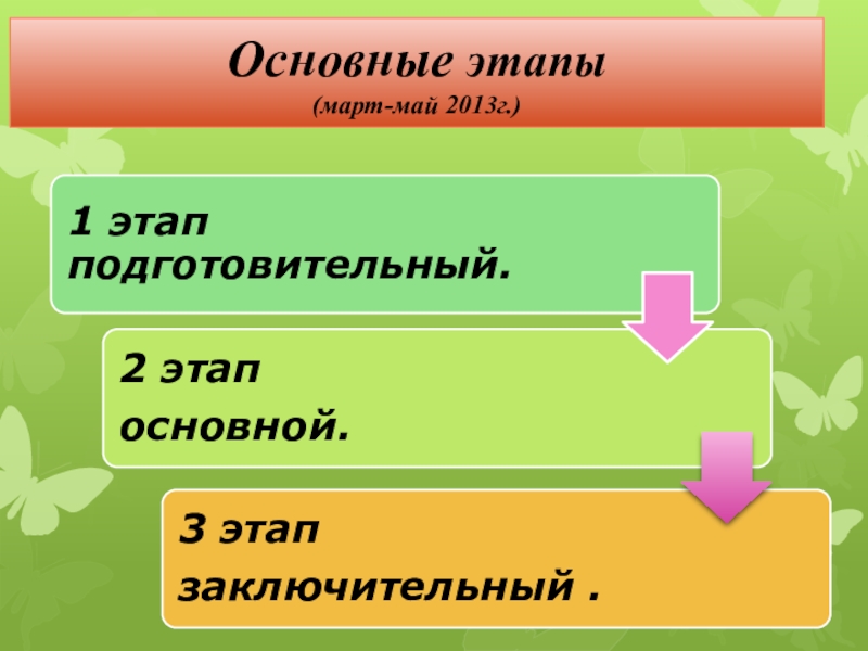 Слайд 9 Основной этап. (с 01 апреля 2013г по 15 мая 2013г)-