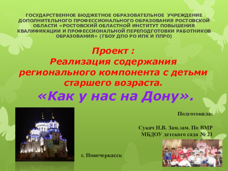 База, реализации проекта: МБДОУ детский сад № 21 г.Новочеркасска