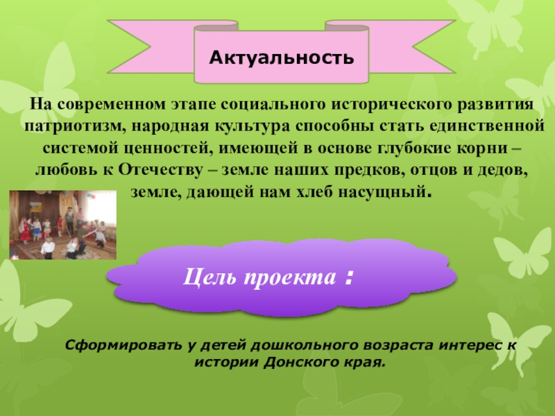 Сформировать у детей дошкольного возраста интерес к истории Донского края.