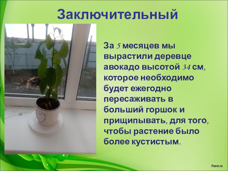 За 5 месяцев мы вырастили деревце авокадо высотой 34 см,