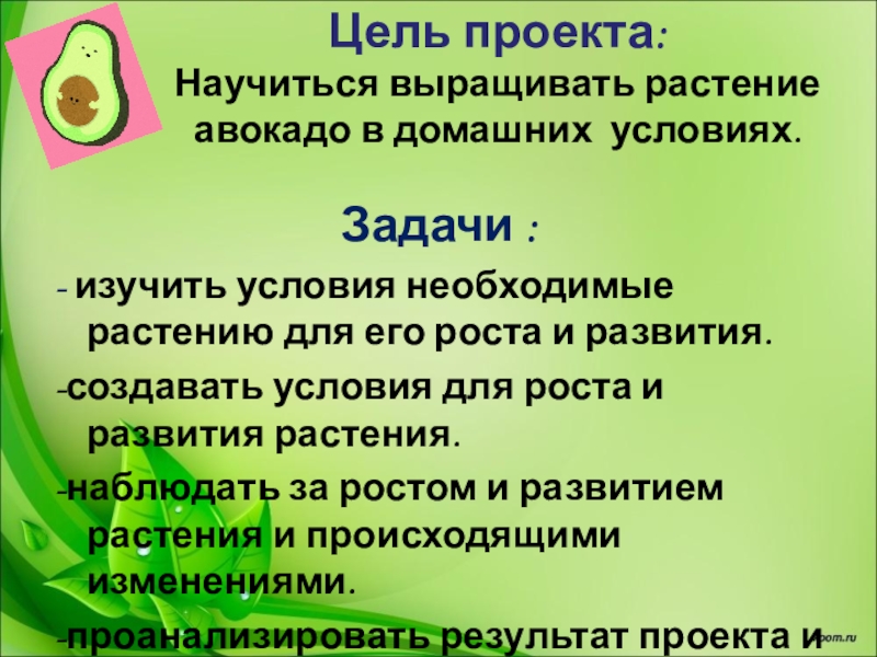 -изучить литературу по выращиванию авокадо в домашних условиях и проанализировать