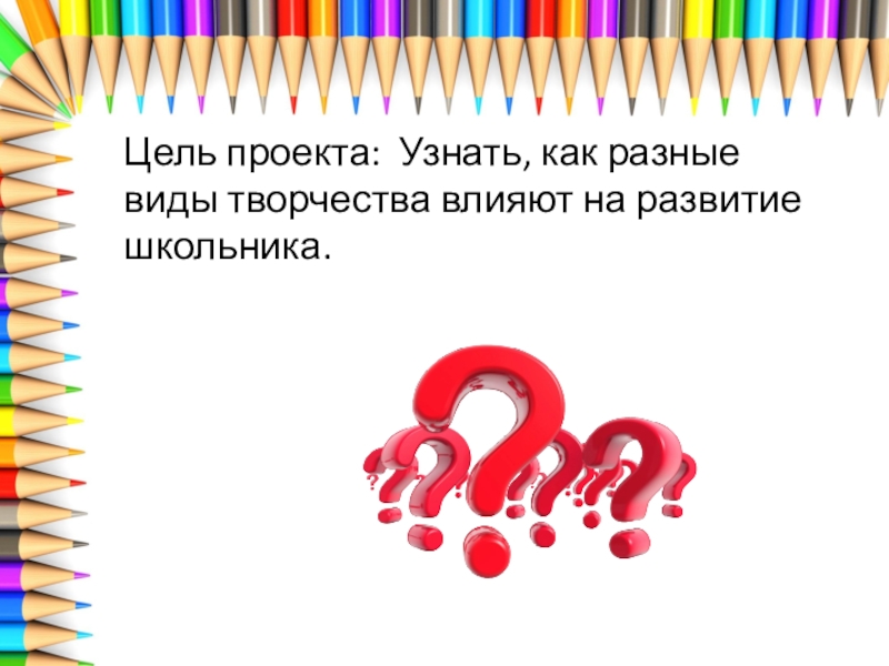 Слайд 2Цель проекта: Узнать, как разные виды творчества влияют на развитие школьника.