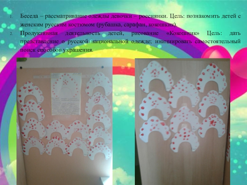 Слайд 10Беседа – рассматривание одежды девочки – россиянки. Цель: познакомить детей с