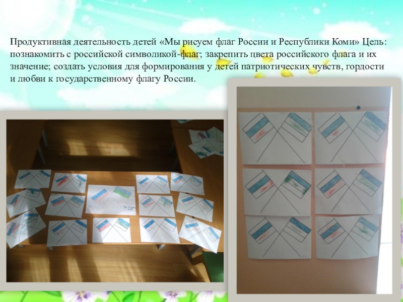 Слайд 5Продуктивная деятельность детей «Мы рисуем флаг России и Республики Коми» Цель: