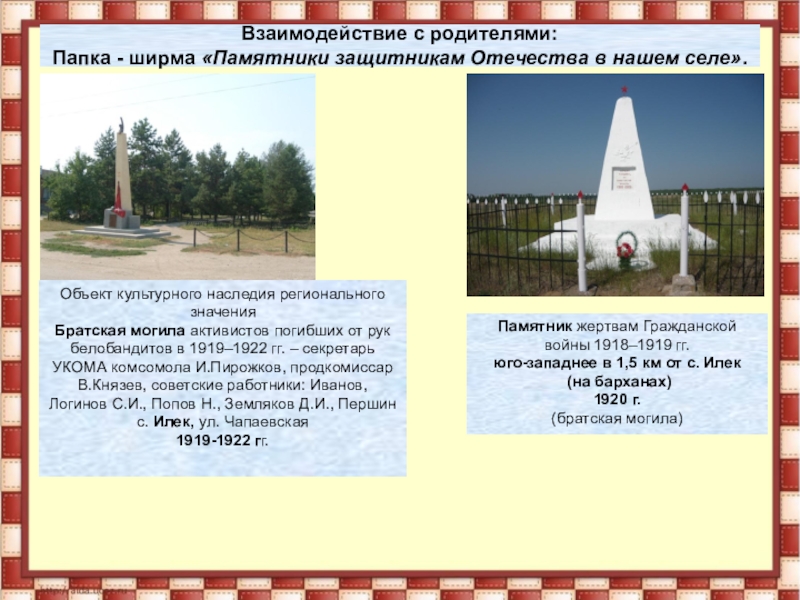 Папка - ширма «Памятники защитникам Отечества в нашем селе».