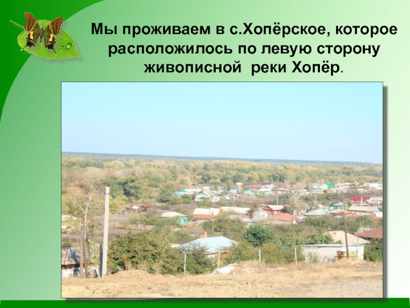 Слайд 3Мы проживаем в с.Хопёрское, которое расположилось по левую сторону живописной реки
