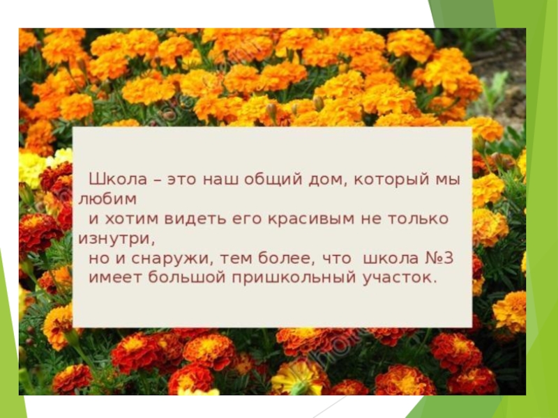 В середине мая провести субботник и высадить бархатцы на школьные клумбы.