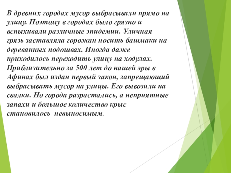 Слайд 6В древних городах мусор выбрасывали прямо на улицу. Поэтому в городах
