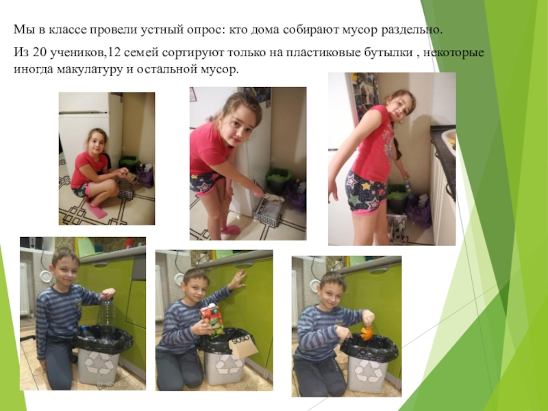 Слайд 15Мы в классе провели устный опрос: кто дома собирают мусор раздельно.