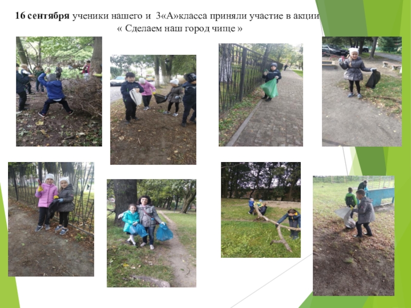 Слайд 17 16 сентября ученики нашего и 3«А»класса приняли участие в акции