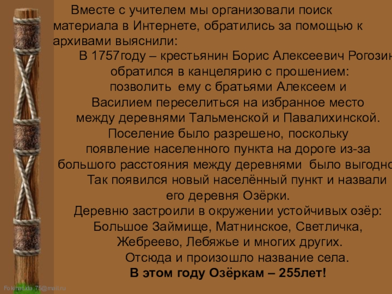 Вместе с учителем мы организовали поиск материала в Интернете, обратились за помощью к архивами выяснили: