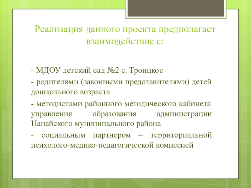 Слайд 12Реализация данного проекта предполагает взаимодействие с: