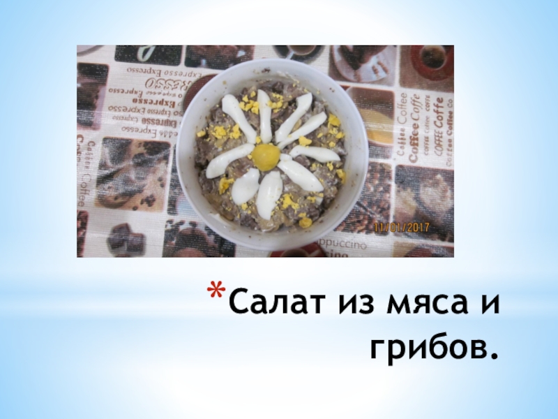 Слайд 2Салат из мяса и грибов.
