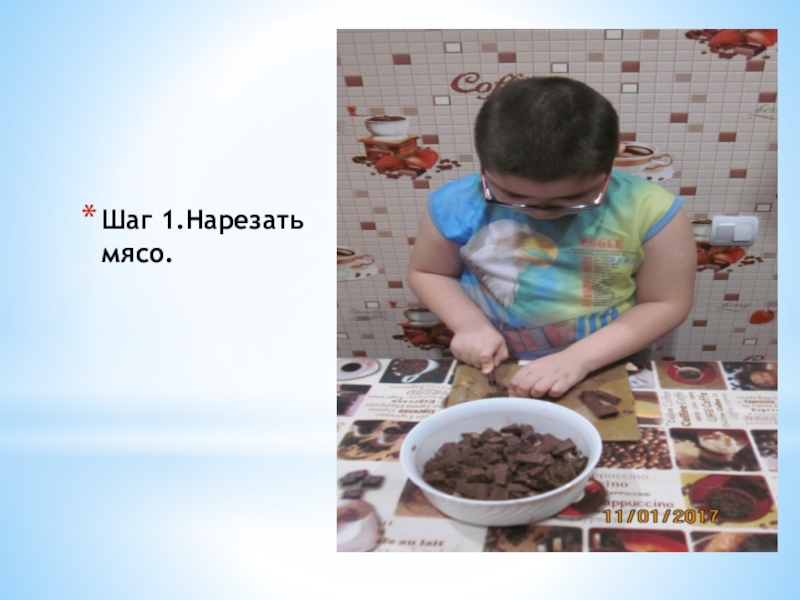 Слайд 4Шаг 1.Нарезать мясо.
