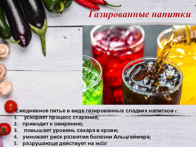 Ежедневное питье в виде газированных сладких напитков :