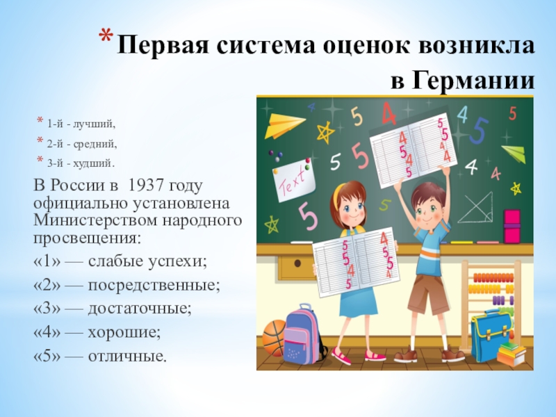 Слайд 3Первая система оценок возникла
