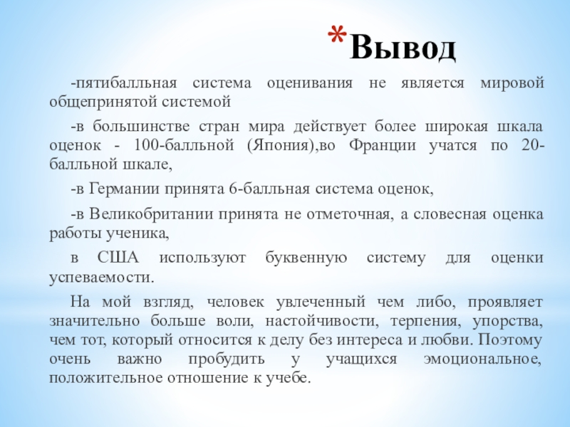 -пятибалльная система оценивания не является мировой общепринятой системой