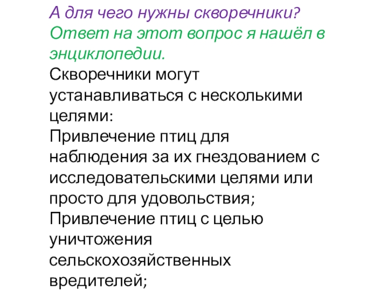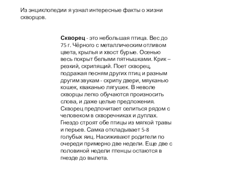 Из энциклопедии я узнал интересные факты о жизни скворцов.