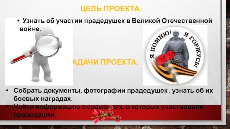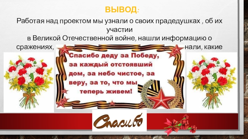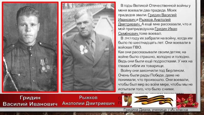 Узнать об участии прадедушек в Великой Отечественной войне.