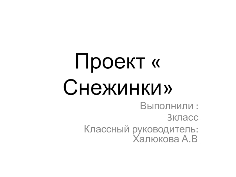 Проект « Снежинки»Выполнили :3классКлассный руководитель: Халюкова А.В.