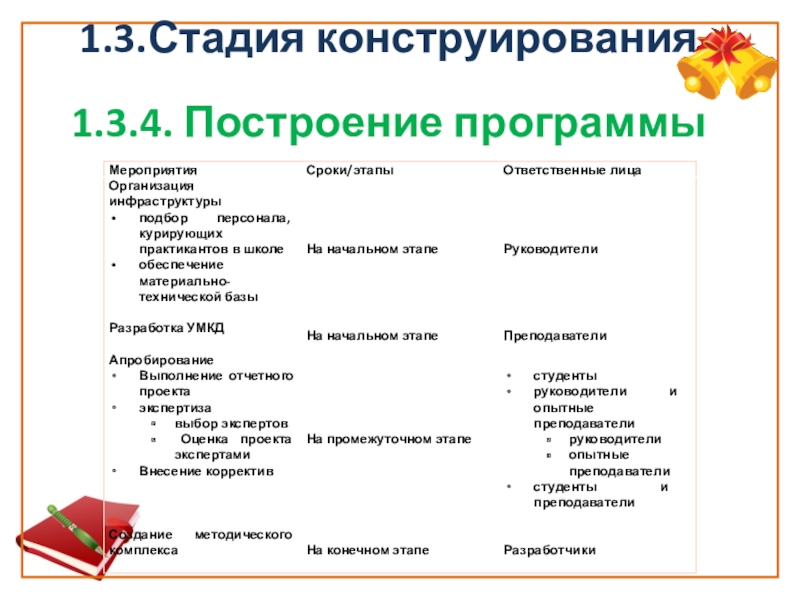 Слайд 12 1.3.Стадия конструирования 1.3.4. Построение программы