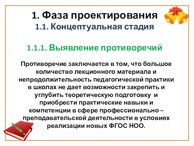 Слайд 2 1. Фаза проектирования 1.1. Концептуальная стадия 1.1.1. Выявление противоречий