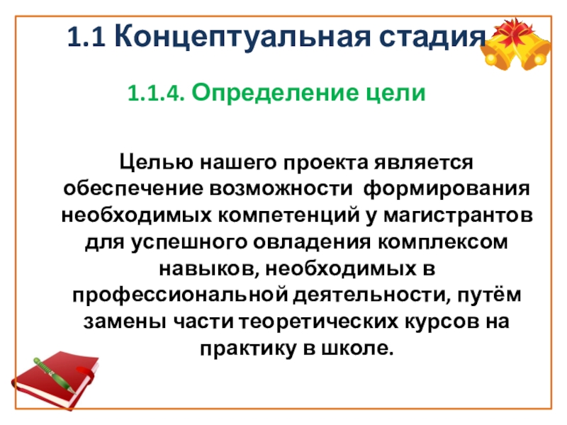 Слайд 51.1 Концептуальная стадия 1.1.4. Определение цели
