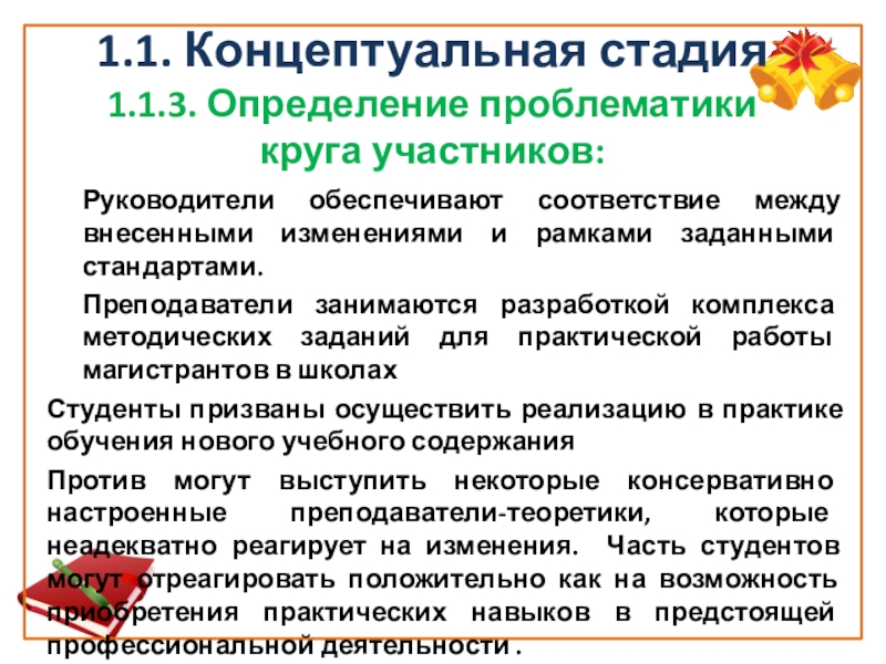 Слайд 41.1. Концептуальная стадия 1.1.3. Определение проблематики круга участников: