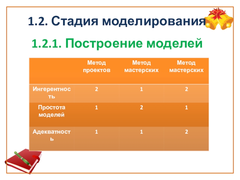 Слайд 7 1.2. Стадия моделирования 1.2.1. Построение моделей